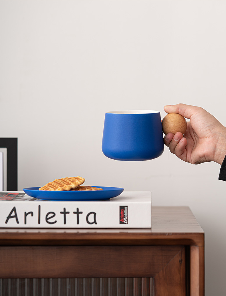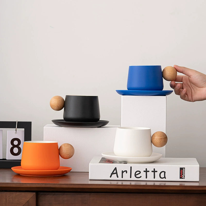 Add a sophisticated touch of Scandinavian design to your daily coffee ritual with our Creative Handle Ceramic Mug & Saucer Set.