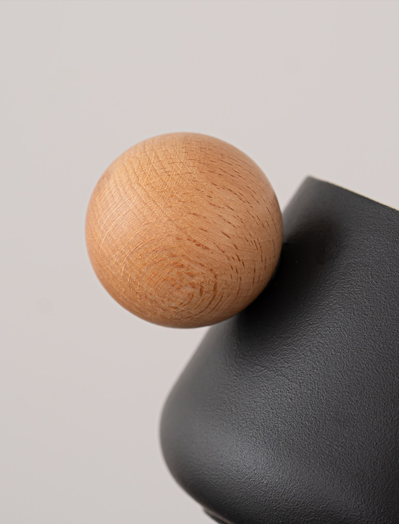 Spherical Wooden Handle: Crafted from polished beechwood, the rounded handle provides a warm tactile contrast and a comfortable grip.